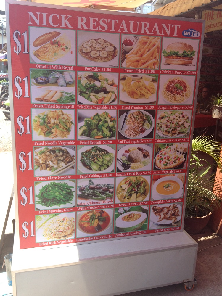 As a foodie I was a little under whelmed at the local signature dishes I tried like the Amok curry. I was expecting the food to be really spicy like I found in Vietnam. Instead I found the food to be only OK in most of the restaurants that I tried, if not a little bland across the board. In total I probably went to 15 or so different places while in Siem Reap and they were all fairly comparable in both price and quality.